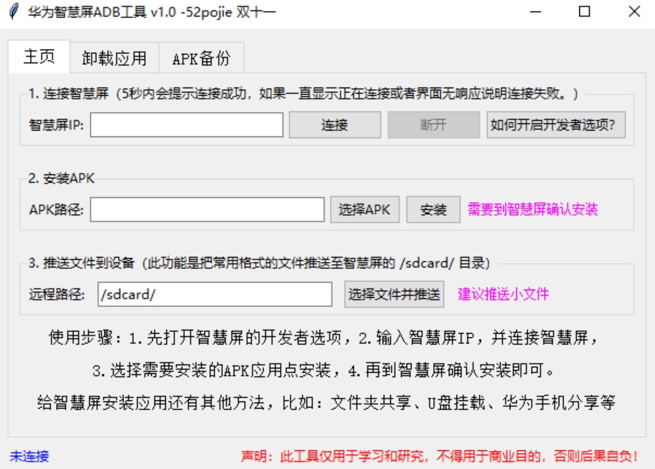 相信很多家里用华为智慧屏的小伙伴都有一个共同的烦恼,那就是想装个第三方的观影或者卸载APP非常麻烦,系统自带的应用又常常无法满足咱们折腾的欲望。今天给大家掏箱底分享的,是一款由吾爱大佬专门针对华为智慧屏开发的极简ADB工具。它的主要使命,就是帮你绕过繁琐的限制,轻松掌控自己的电视。