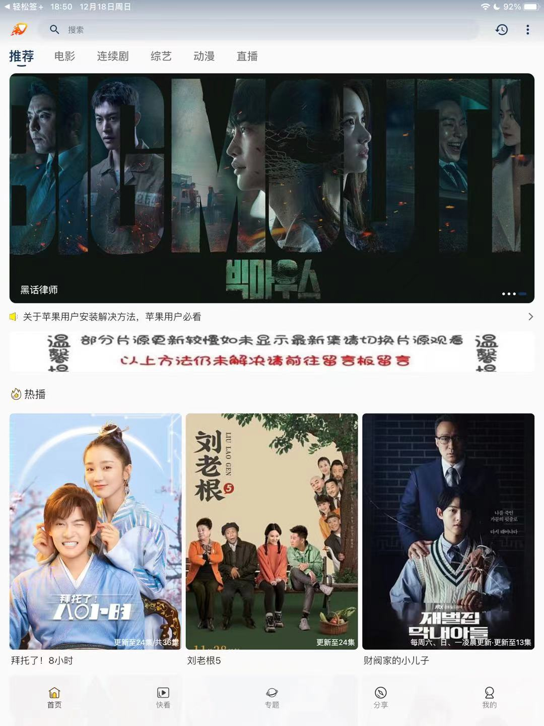 - 完美兼容:支持 腾讯\爱奇艺\优酷\芒果\哔哩哔哩 全部资源